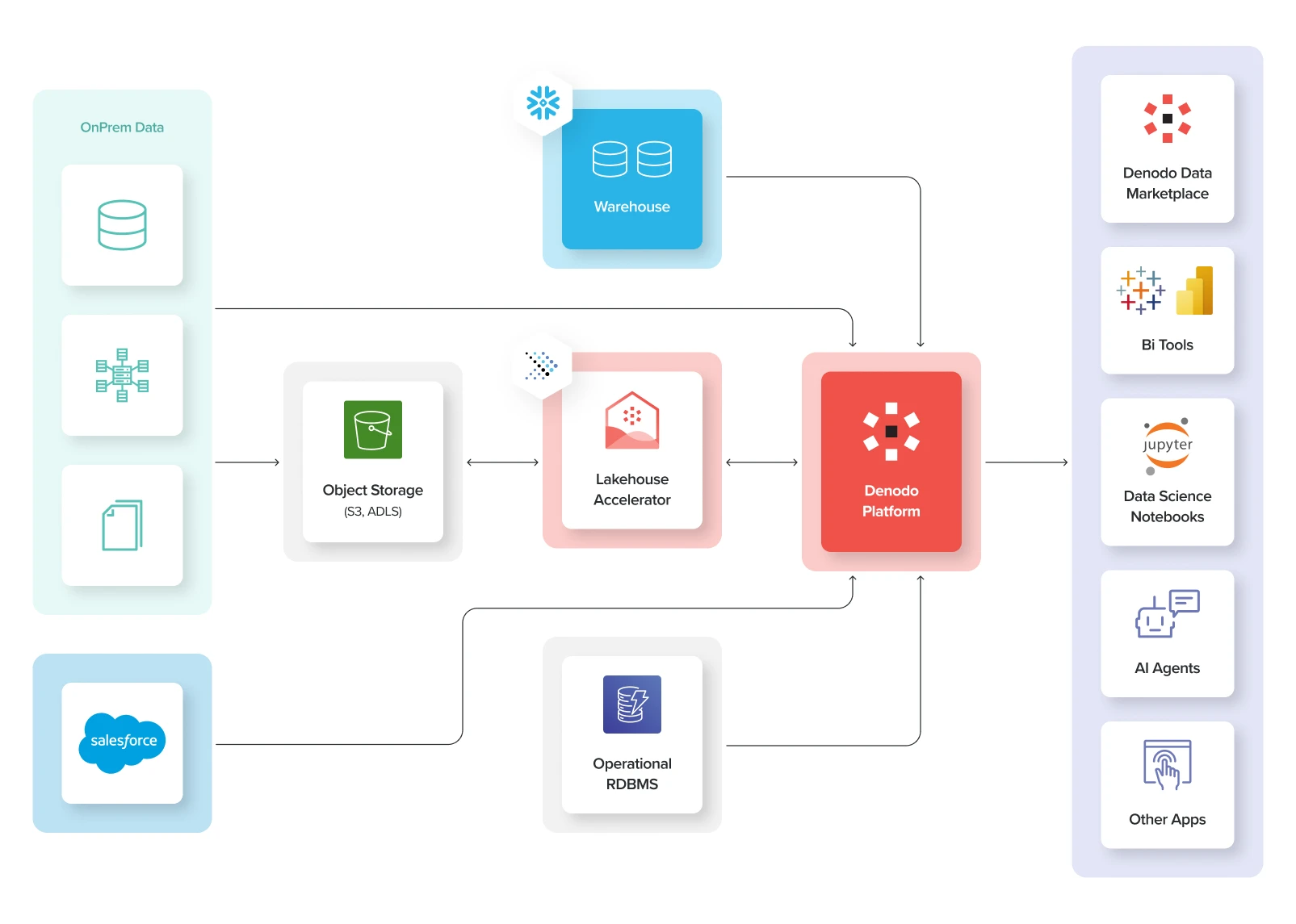 Denodo 与您的湖仓架构相结合,提供了将原始数据转化为真实业务成果所需的性能、灵活性与控制力。